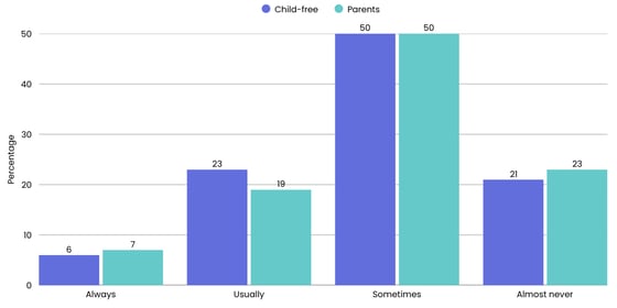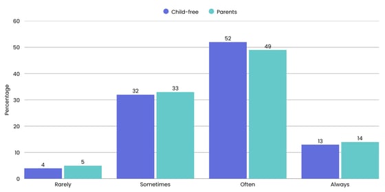 Of course, there's much more that determines our attitudes and choices other than our age. So this time, we decided to slice and dice the data by a different potentially determining factor: Whether or not you have kids.