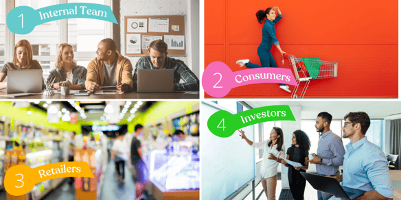 1. Internal Team 2. Consumers 3. Retailers 4. Investors